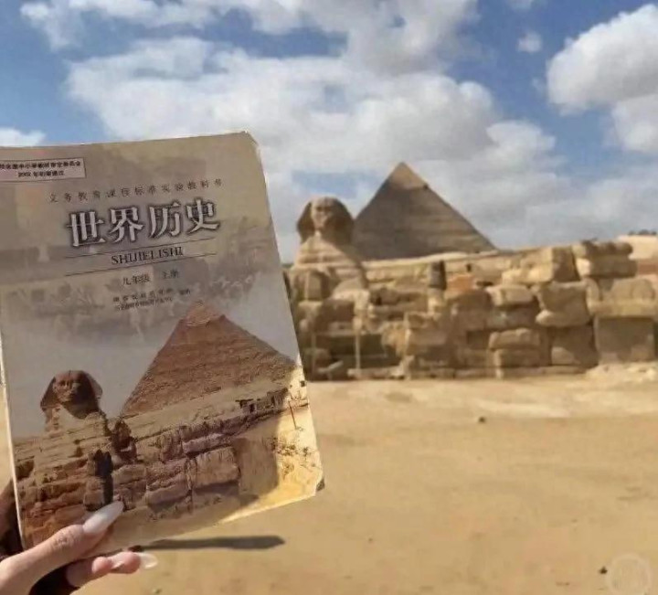 ▲初三历史教材的封面正是金字塔。图/上游新闻
