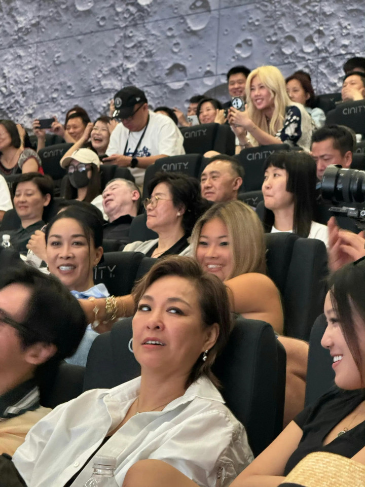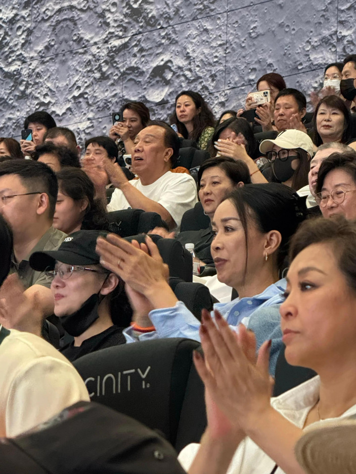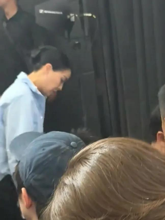 观影结束,那英和女儿提前离场,那英走在前面,女儿紧随妈妈身后,两人一前一后离开。那英低着头,而站直的女儿看起来应该也跟那英一样高了。