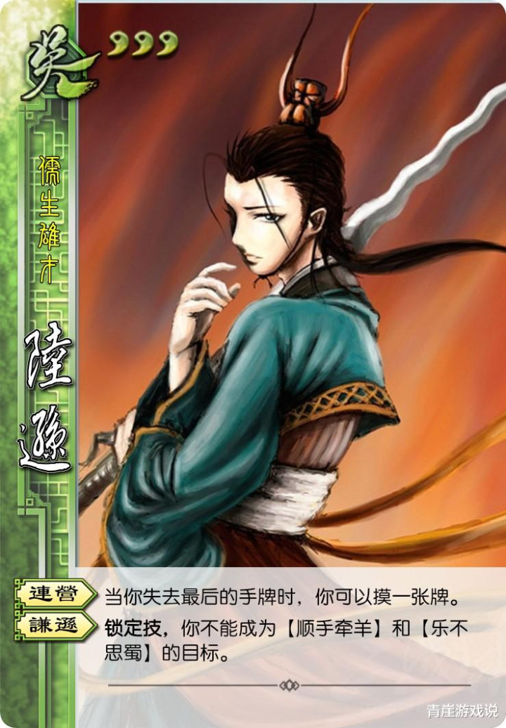 陆逊是吴国的概念神,【连营】绝对是神技,手牌打空就摸一张牌。那么有没有可能手里牌一直用,一直摸呢?当然了,这就是独属于陆逊的刀尖舔血摸牌模式。