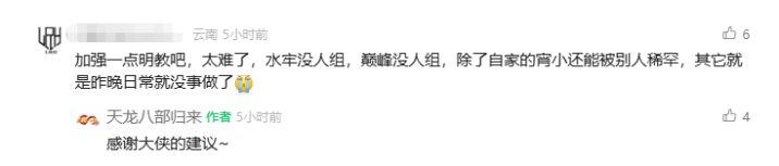 当然,也有玩家在继续提意见,比如希望加强明教,希望优化水牢和巅峰的组队体验。而官方也都一一在下面回复:“感谢大侠的建议~”