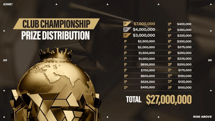 目前KSG在俱乐部积分排名中暂列并列第19位。有六只队伍并列第19。因此KSG至少获得的奖金是19-24名奖金总和平分的数额,即16.25万美元。