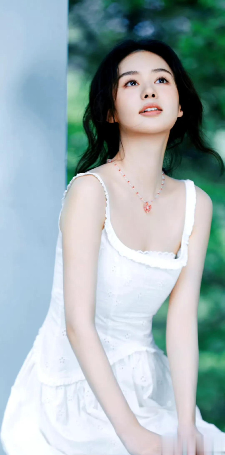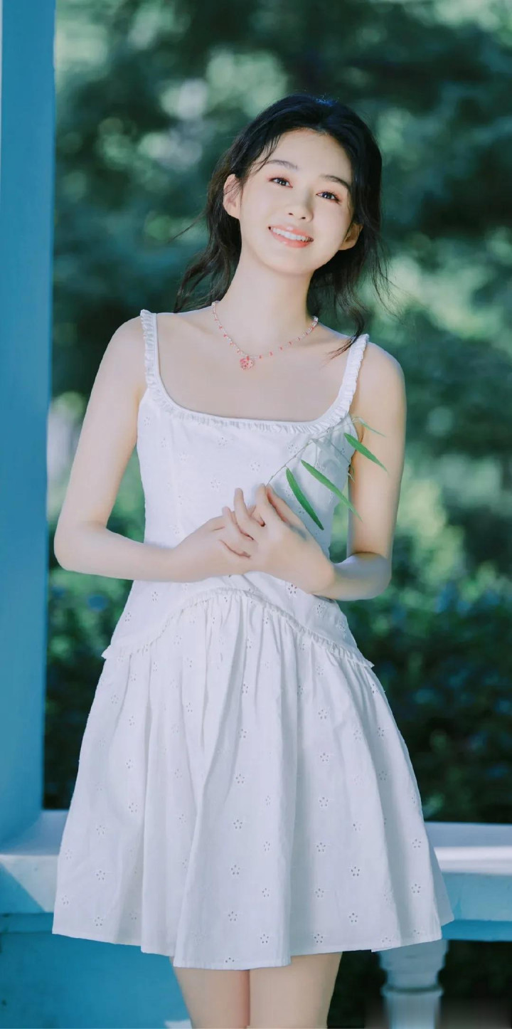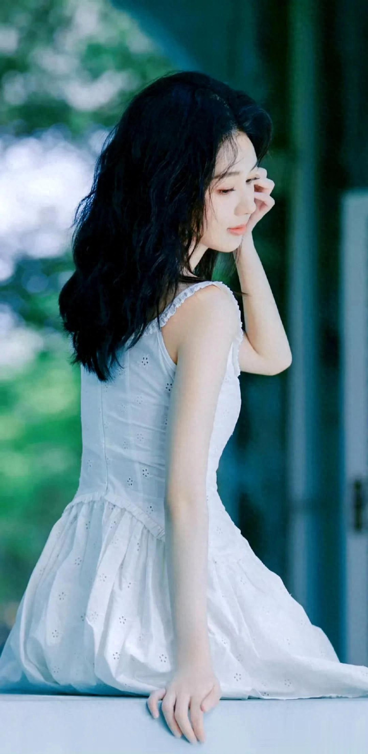 郑合惠子纯美壁纸, 白色吊带裙, 少女感满满