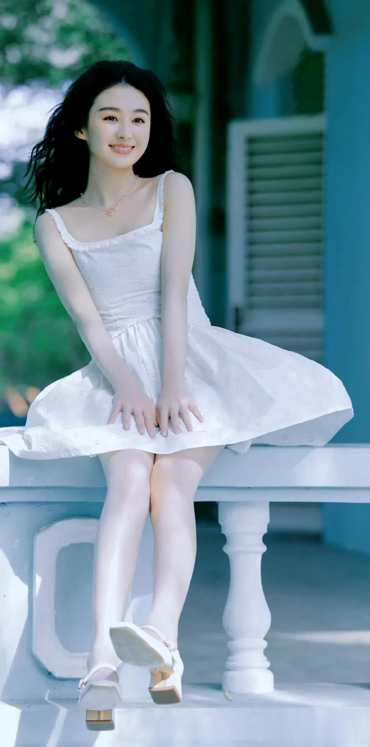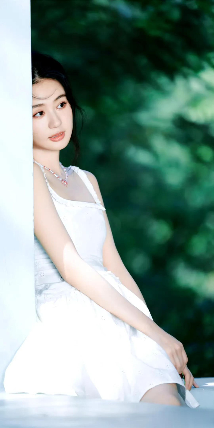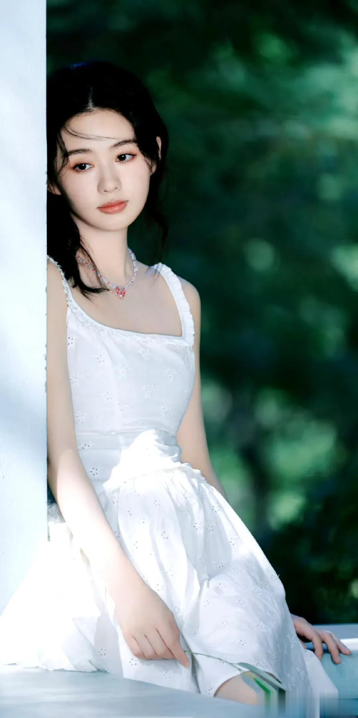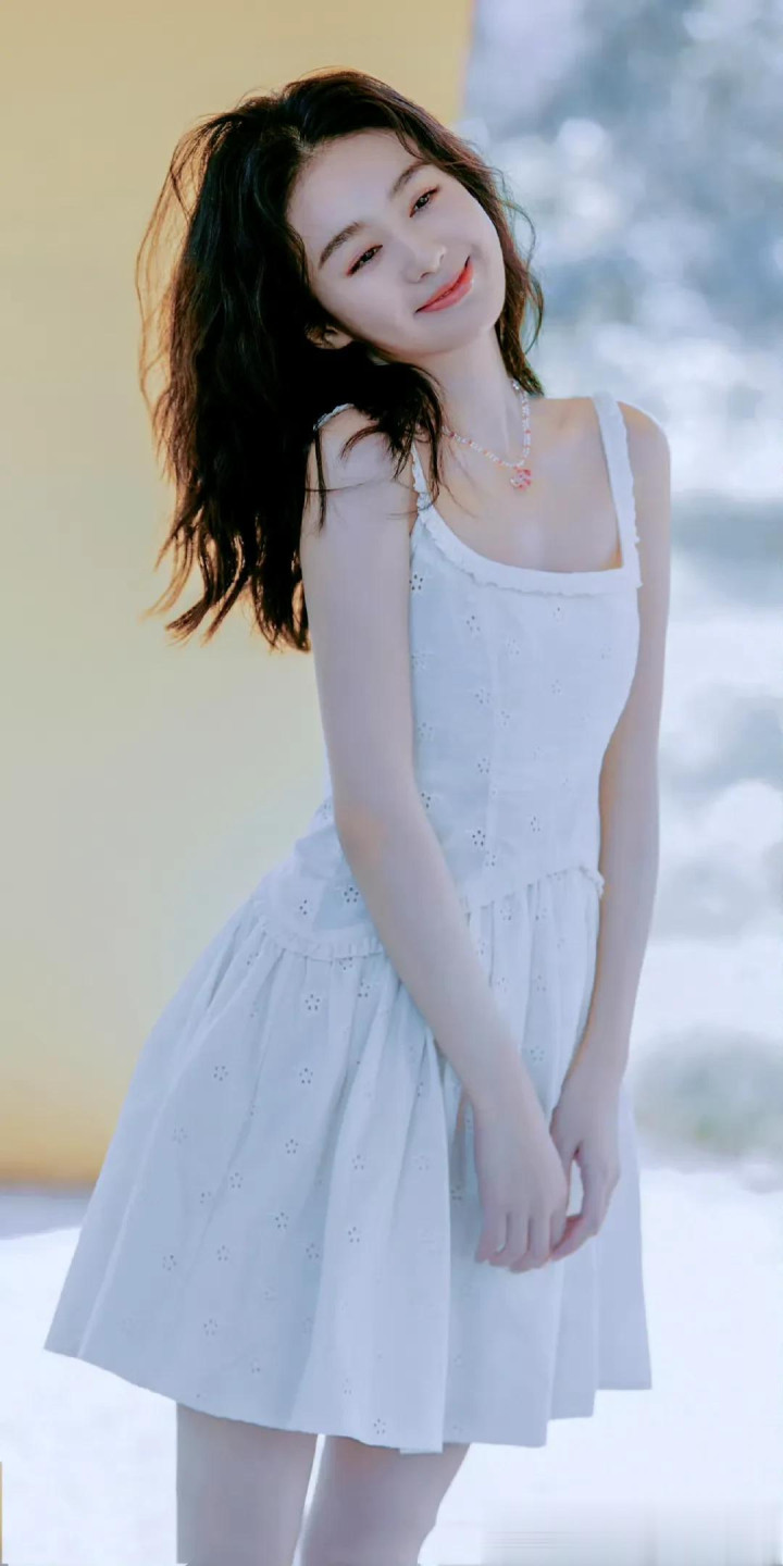 郑合惠子纯美壁纸, 白色吊带裙, 少女感满满