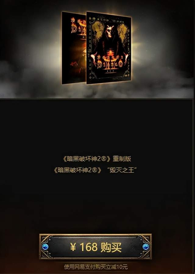 档位一:买一送一。玩家支付168元,即可获得《暗黑破坏神2》重制版,以及《暗黑破坏神2》游戏本体。这个档位,算是满足了老玩家补票,同时又能体验到老游戏的换新感。对于新玩家而言,这也是一个具有性价比的选择。