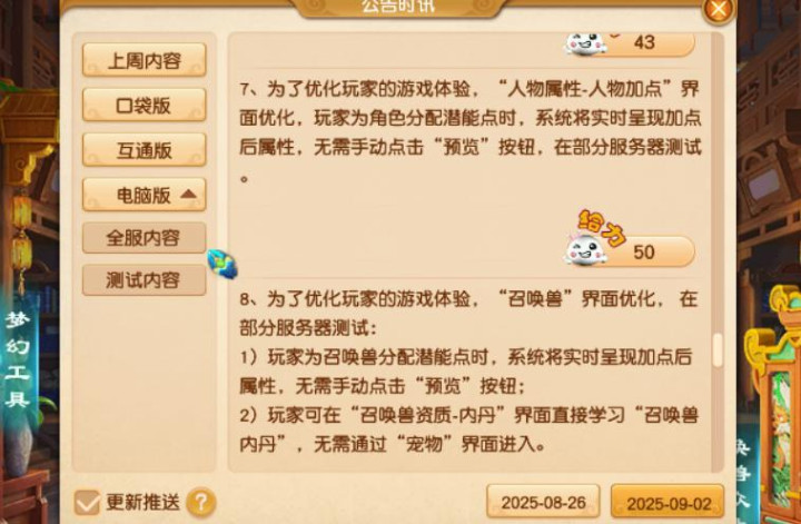 7、人物属性点和召唤兽属性点界面改动,现在是分配潜能点的时候,会实时显示增加的属性。