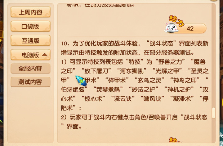 目前的战斗状态是只显示各种门派技能或者法宝,显示特技状态以后,就可以分清谁加了野兽谁还没加野兽,以及其他的各种buff特技。