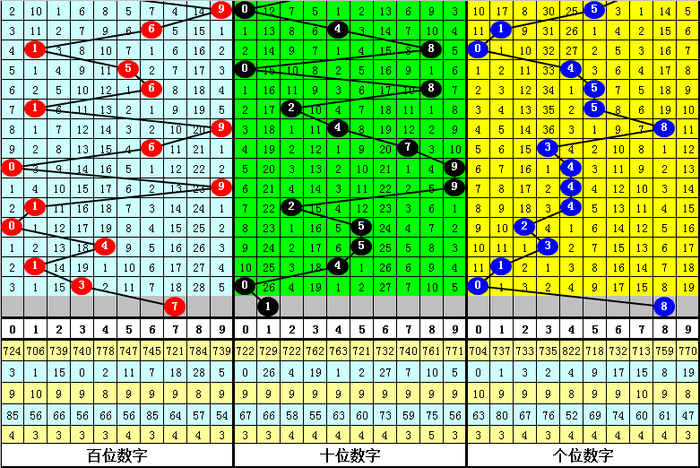 在历年同期中两码合开出年限分别为:2、9出现8年,1、3、4出现7年,5出现6年,0出现5年,6出现4年,8出现3年,7出现1年,第2025300期预计两码合出现:5、8、9。