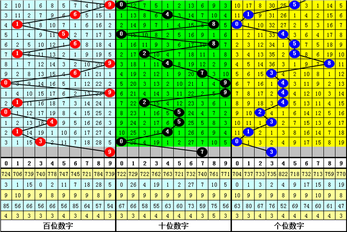 中号球:上期奖号为0,开出小 号、偶号,该位前10次开出小 号、偶号的现象时其奖号分别为:627、707、247、905、641、504、125、948、124、141,其中中号球012路比为3:4:3。