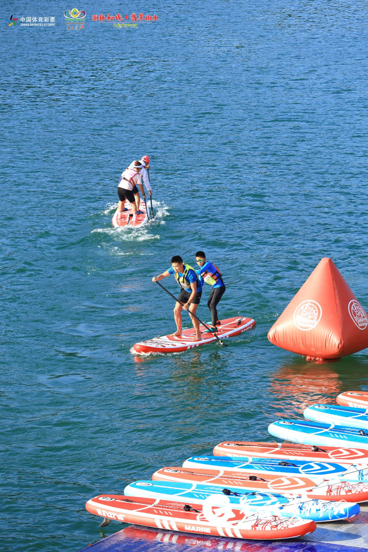 桨板虽是一项相对小众的水上运动项目,常在城市水域开展,但随着体育旅游的兴起,它的运动场边界正不断拓展,走进大山深处、村落的河湖,让爱好者开启全新旅程。