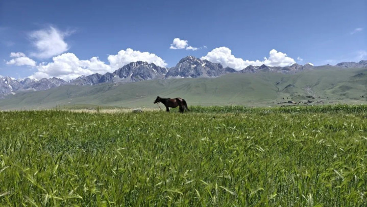 广州40度的那天,这里的晚上10度;其他地方骄阳如火,这里百花盛开,雪山伫立;城里的人们自嘲“牛马”,这里的牛马在离天最近的地方,静静吃草,静静看着路过的你;土拨鼠的声音不是网络上的尖叫,藏族姐姐从青稞地里直起身子,村头的奶奶给给每个人的微笑中都有阳光,爷爷转经的身影,缓慢又坚定;雪山不语,静静俯视……
