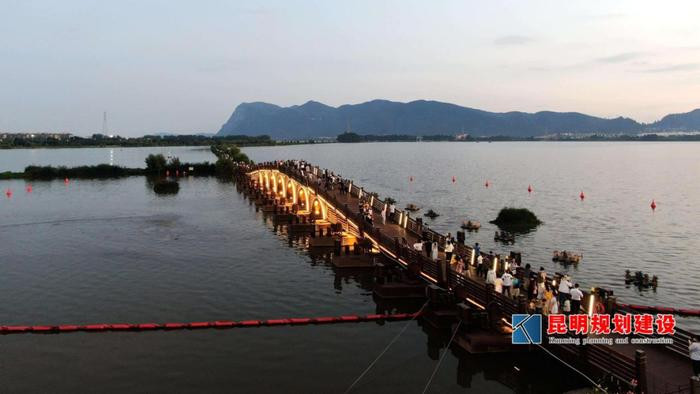 绿道环线新贯通:浮桥建成后,草海东西两岸绿道实现便捷连通。市民游客未来可方便地从草海东岸绿道,经浮桥漫步至东风坝,直达西岸绿道,全程均在滇池草海的水上中心区,实现“穿越草海”。