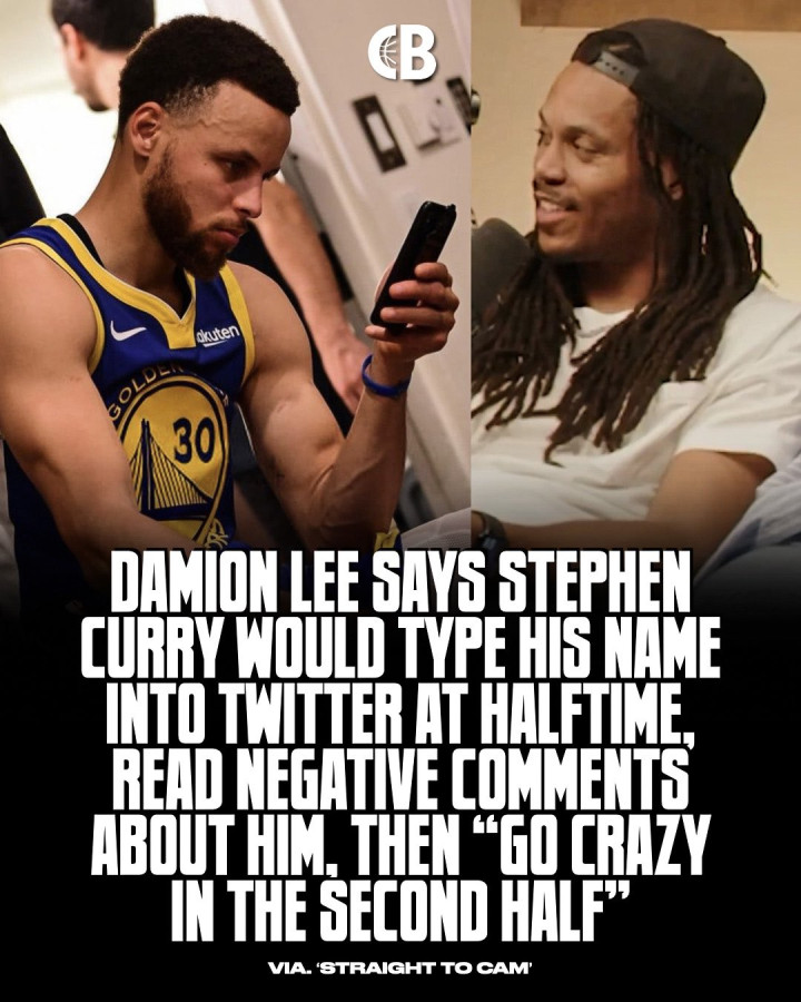 达米恩-李在一档播客节目中提到了库里在中场休息时的一些怪癖,达米恩-李表示:我在更衣室里坐在他旁边,他会在推特上输入自己的名字,大概会浏览一两分钟评论。然后关上手机,之后在下半场火力全开。