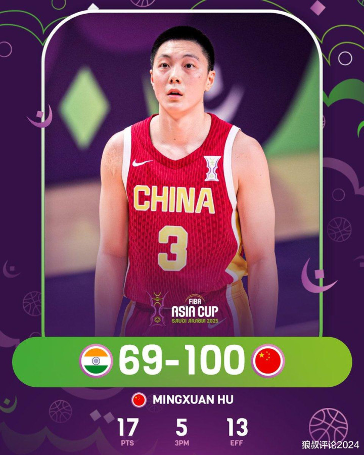 北京时间8月7日,男篮亚洲杯继续开打,中国男篮100-69大胜印度,本场比赛,胡明轩登场18分49秒,12中6(3分8中5)得到17分1篮板2助攻,攻守两端都呈现出非常出众的比赛影响力,与上一场相比,几乎是达到判若两人的地步。
