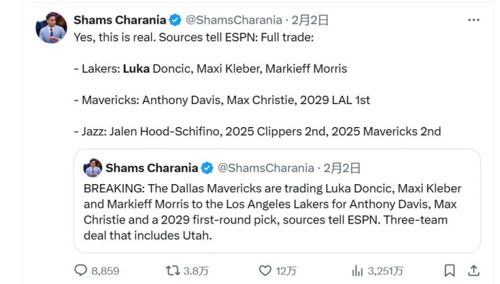 但涉及到特大新闻,Shams还是独一档。