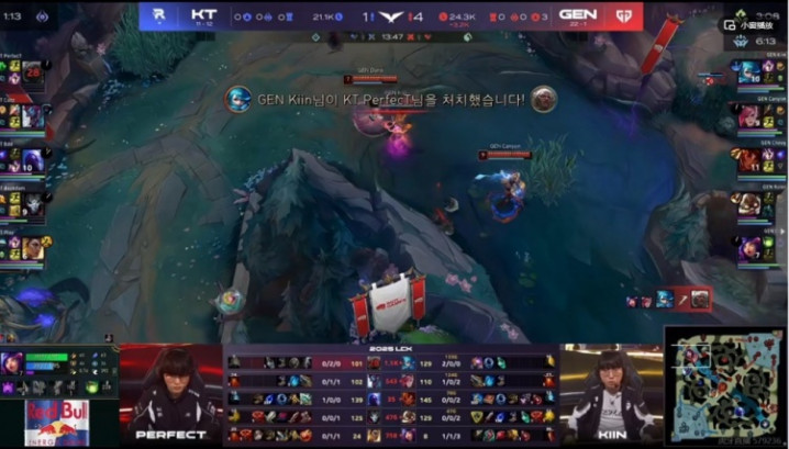 [15:22]KT拿下峡谷先锋!GEN换掉了对手中路一塔!随后GEN四人包下,第三次强杀掉了PerfecT安蓓萨!