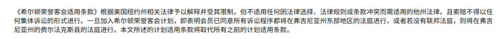 《希尔顿荣誉客会适用条款》显示,相关条款根据美国纽约州相关法律予以解释并受其限制,但不适用任何因法律选择、法律规则或条款冲突而需适用的他州法律,且索赔不得以任何集体诉讼的形式进行。一旦加入希尔顿荣誉客会计划,即表明会员已同意所有诉讼程序都将在弗吉尼亚州东部地区的法庭进行。