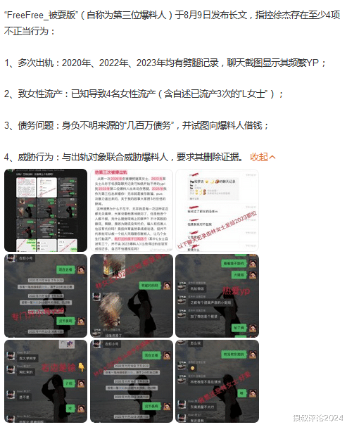有网友曝出郭昊文在与其交往期间,与其他女性保持恋爱关系外,存在出轨,长期与多名女性保持恋爱关系等,甚至升级到明码标价的赔偿的桃色纠纷。