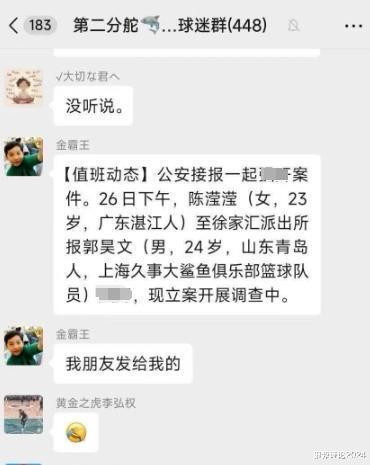 然而,23-24赛季,郭昊文再次被爆出大瓜,网传郭昊文涉嫌QJ,晒出了一张疑似上海球迷群的微信群聊截图。
