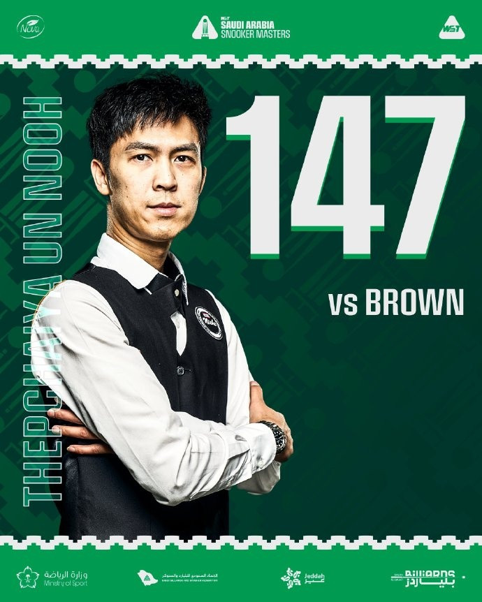 塔猜亚打出这杆147,是本赛季第3杆、历史第220杆147。如果接下来的沙特大师赛无人再打出满分,他将拿下5万英镑满分奖。