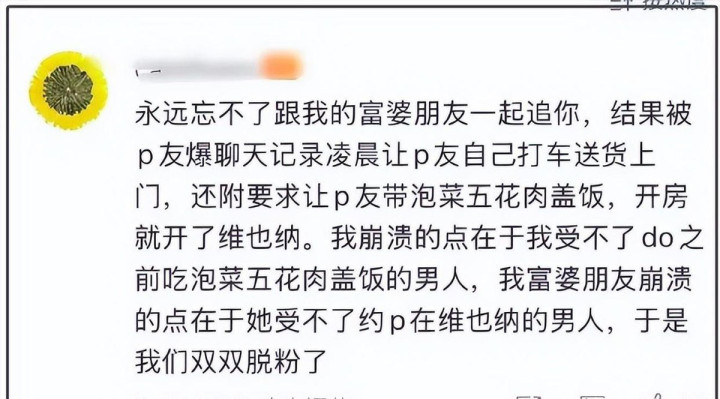 不止一位粉丝遇到过这种情况,并且她们彼此之间还认识,其中一位粉丝因为被要求带盒饭觉得扫兴,随后脱粉并揭露了许凯的这些行为。