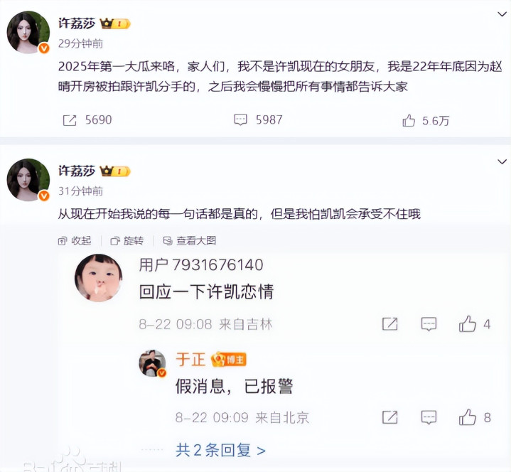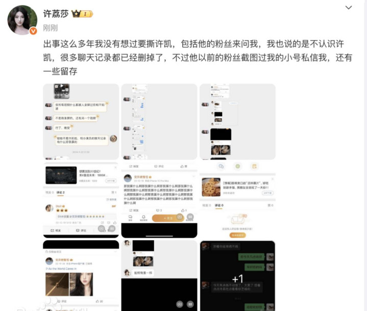 许荔莎选择在许凯新剧开播的关键时期,在社交平台公开宣布将揭露许凯的“真相”,并表示自己已经准备好了大量“证据”。