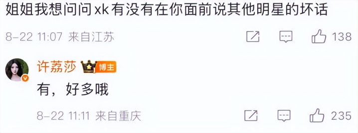 许荔莎还在爆料中透露,许凯曾私下议论其他艺人,她没有直接点名但网友们根据姓氏进行了猜测。