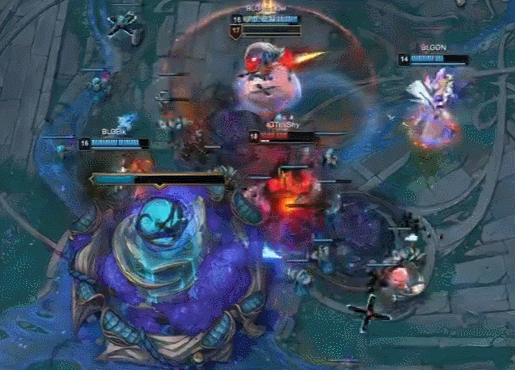 BLG这时候没人意识到Wei是藏在草丛里的,IG其他人正面勾引BLG开团,然后BLG就像鱼儿一样上钩了。随后Wei立刻杀出,Rookie的发条直接大满了4个人,BLG团战瞬间爆炸!