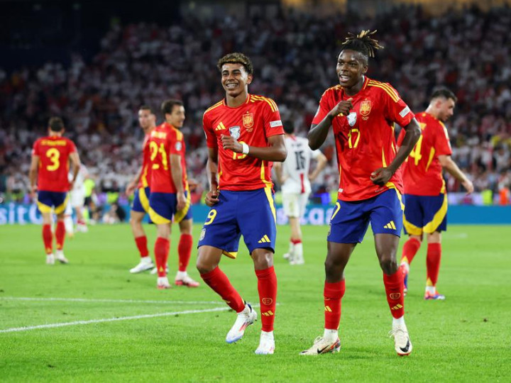 A组的德国和E组的西班牙,正式开始首场比赛,结果却大相径庭,奥亚萨瓦尔、库库雷利亚和梅里诺相继建功,西班牙轻松在客场全取三分,亚马尔的射术受到球迷的质疑,跟尼科一起,年轻的双子星在末段均被换下。