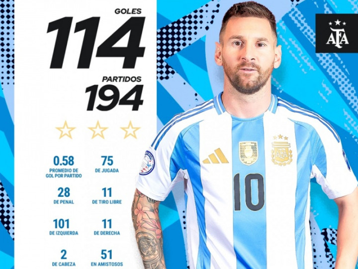 赛后,梅西表示,以这样的方式结束本土最后一场正式比赛,是自己的梦想。阿根廷足协也晒出梅西的数据,194次出场,打进114个进球,场均接近0.6球,其中有28个是点球,51球在友谊赛中打进的,另外还包括13个世界杯正赛进球。