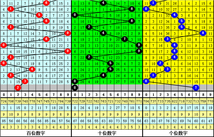 上期第二位奖号为:0,间隔10期之后开出,走势较温,前10期该位热码开出次数较少,本期注意该位热码逐渐回暖,关注号码0。